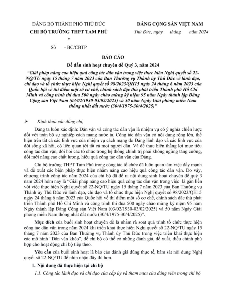 Không gian văn hóa Hồ Chí Minh - Chi bộ Trường THPT Tam Phú
