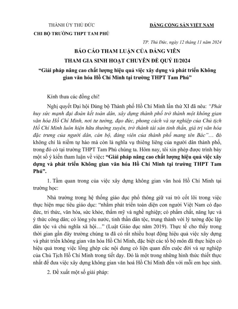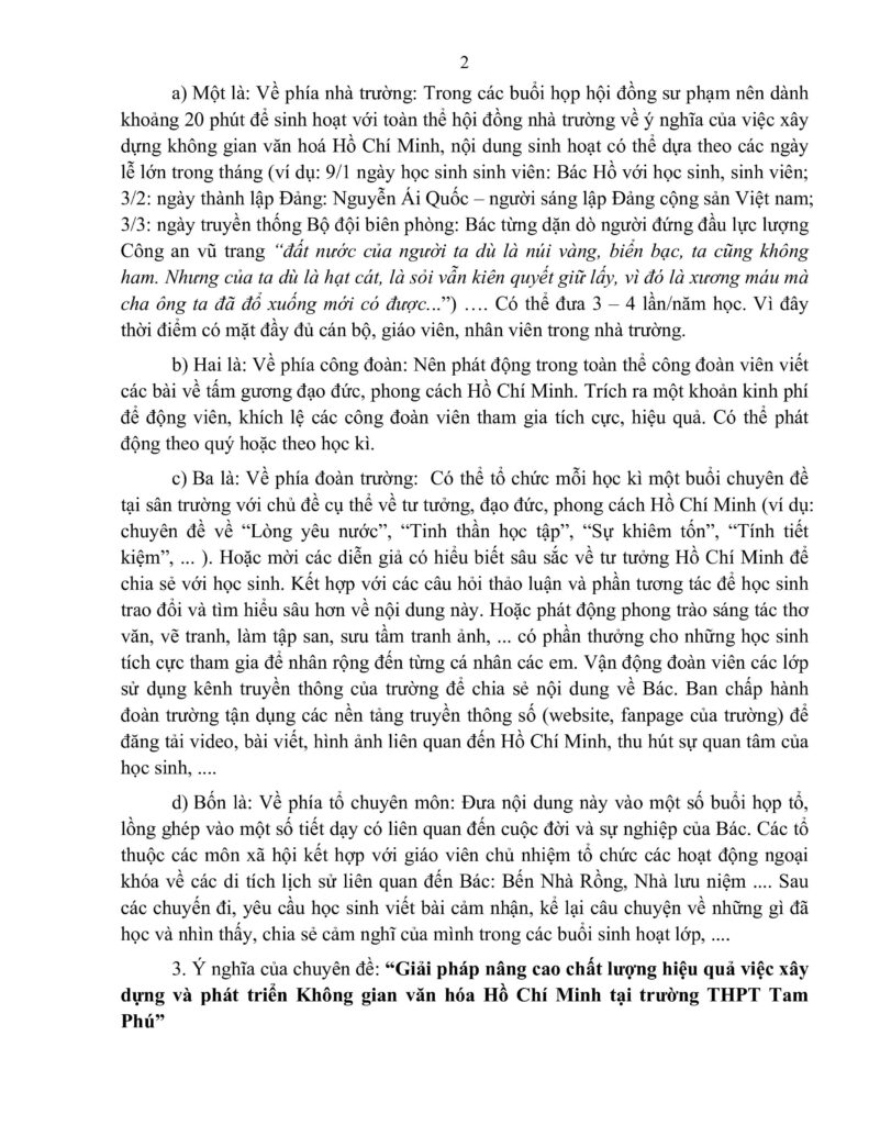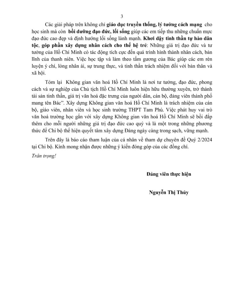 Không gian văn hóa Hồ Chí Minh - Chi bộ Trường THPT Tam Phú