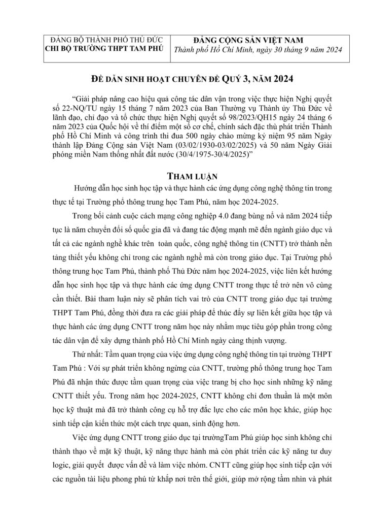 Không gian văn hóa Hồ Chí Minh - Chi bộ Trường THPT Tam Phú